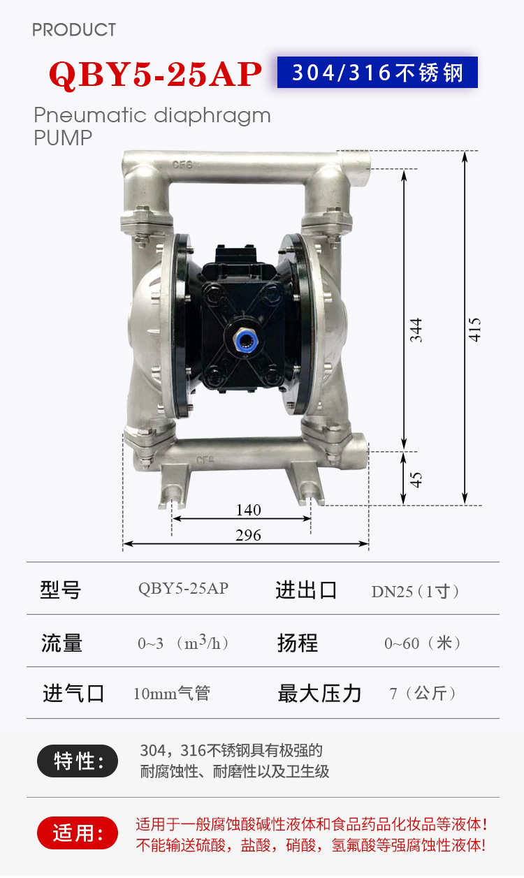QBY5-25AP螺纹接口不锈钢隔膜泵